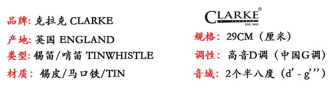 这是克拉克锡笛公司在成立150年后,克拉克锡笛公司在已有的知道名度和极高的产品制造工艺技术,所推出的一批可爱型号锡笛。它依旧沿用贺锥形笛身,并配上塑料吹口。结合传统工艺与现代技术于一身。便演奏,易吹奏,具有清澈准确的音质。(这款和美格看上去很像,它的不同之处是笛身材质和笛嘴,音色也是不太一样的!)